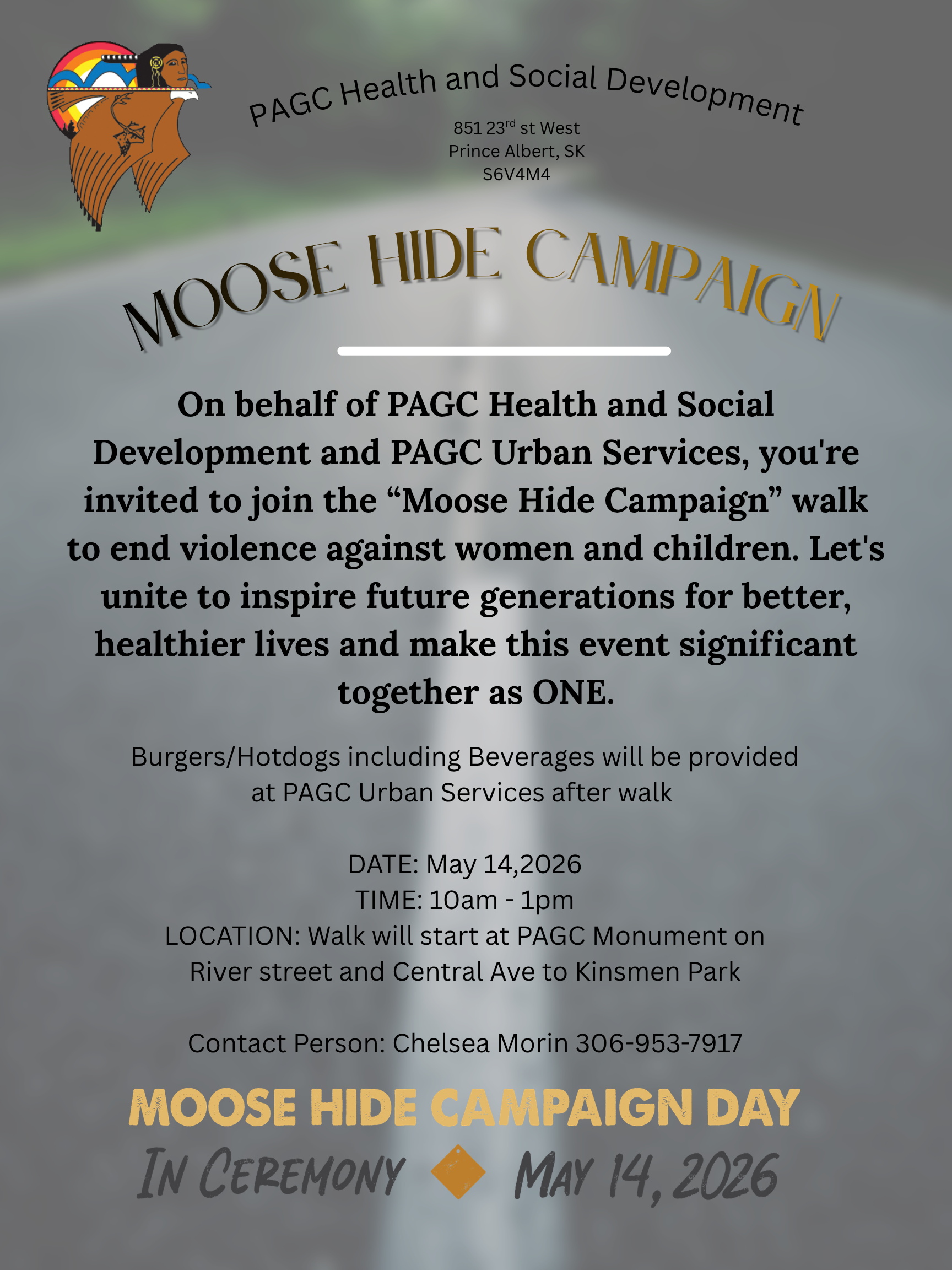 MOOSE HIDE CAMPAIGN On behalf of PAGC Health and Social Development and PAGC Urban Services, you're invited to join the "Moose Hide Campaign" walk to end violence against women and children. Let's unite to inspire future generations for better, healthier lives and make this event significant together as ONE. Burgers/Hotdogs including Beverages will be provided […]